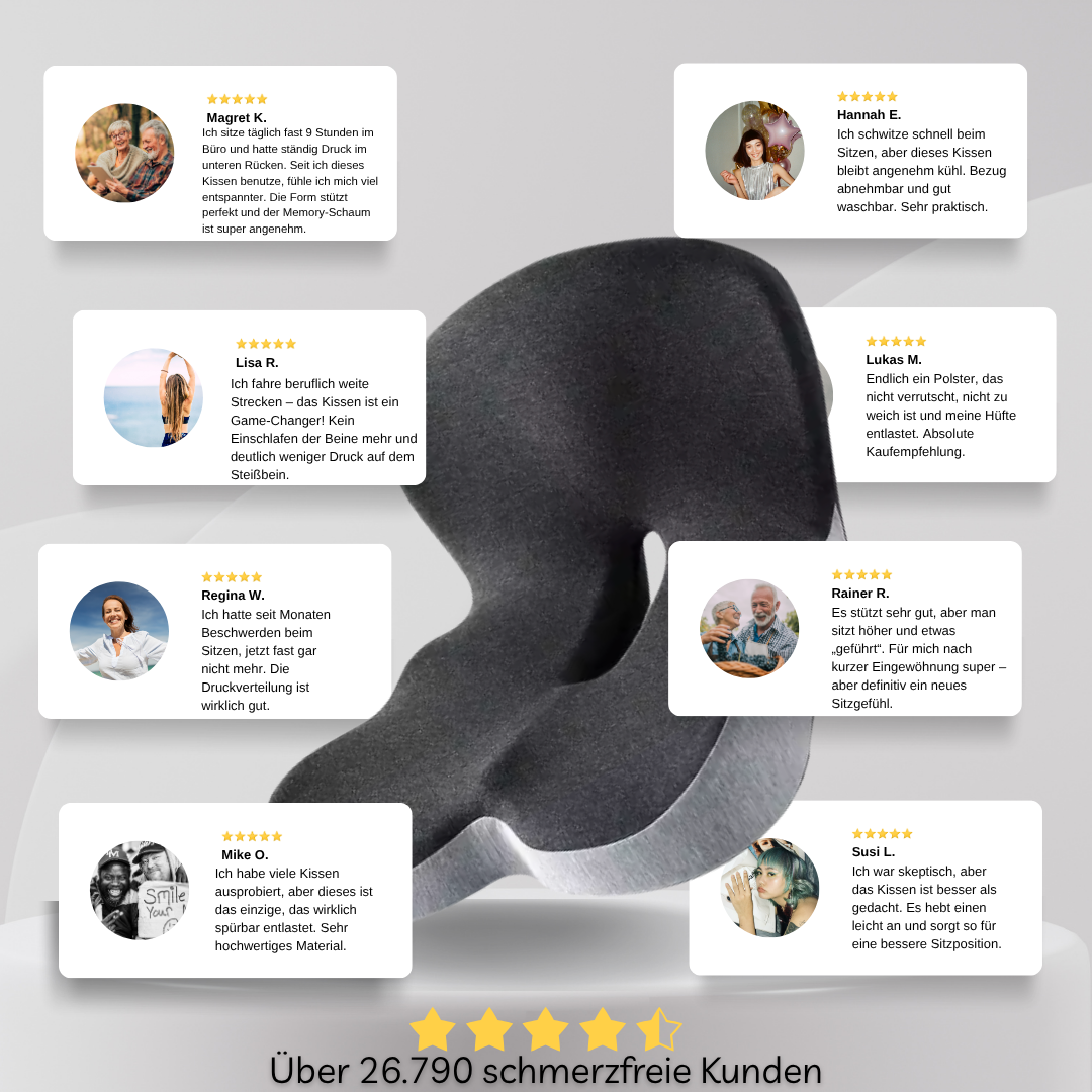 Das ergonomische Design entlastet Wirbelsäule und Steißbein und Viele Nutzer berichten über spürbare Linderung.