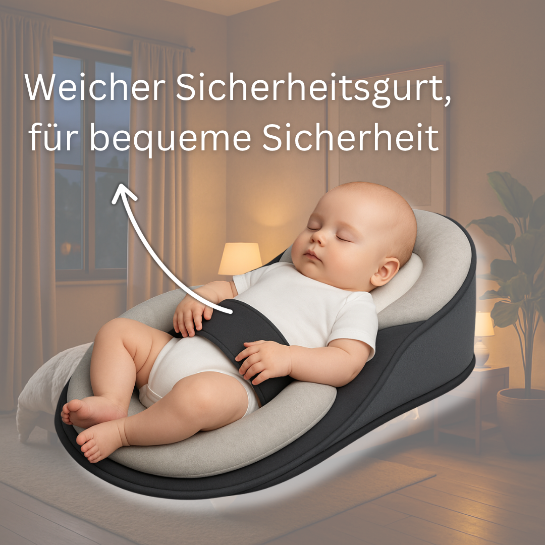Mit seitlichen Schutzpolstern und einem verstellbaren Gurt bleibt dein Baby bequem und sicher auf dem Rücken liegen. So reduzierst du die Gefahr des Umdrehens und schenkst euch beiden friedliche Nächte voller Geborgenheit.